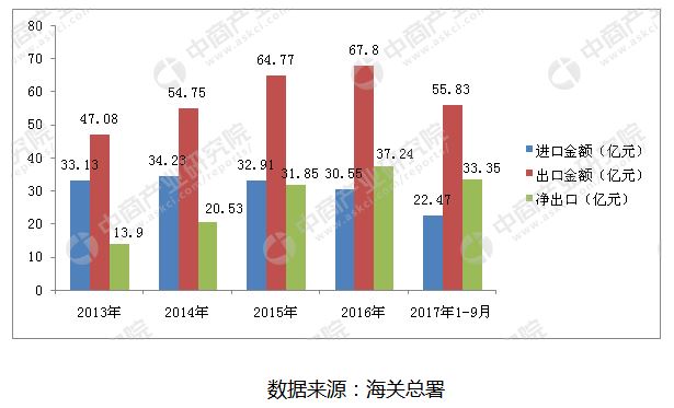 出口方面亦有不俗表現(xiàn)。據(jù)海關(guān)總署數(shù)據(jù)顯示,2016年,我國凈出口鋰離子電池達(dá)37.25億美元。值得注意的是,自2012年我國鋰離子電池出口金額首次超過進(jìn)口金額之后,我國鋰離子電池凈出口數(shù)據(jù)已連續(xù)4年增長,我國已從鋰離子電池的凈進(jìn)口國完全成長為成為鋰離子電池的凈出口國。2017年1-9月,我國鋰離子電池凈出口達(dá)到33.35億美元,相比上年同期增加了8.59億美元,繼續(xù)保持快速增長態(tài)勢。