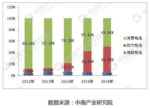 鋰離子電池具有能量密度高、循環(huán)壽命長、充放電性能好、使用電壓高、無記憶效應(yīng)、污染較小和******性高等優(yōu)勢。鋰離子電池經(jīng)過多年的發(fā)展,工藝已經(jīng)趨于成熟,價(jià)格逐步下降,加上******政策助推,導(dǎo)致鋰離子電池在電池行業(yè)的市場份額持續(xù)提升。鋰離子電池的終端應(yīng)用包括消費(fèi)電池市場、動(dòng)力電池市場及儲(chǔ)能電池市場。其中,消費(fèi)電池市場是******的終端應(yīng)用,2016年在鋰離子電池的終端應(yīng)用中占到49.84%。動(dòng)力電池市場是鋰離子電池的第二大終端應(yīng)用,2016年在鋰離子電池終端應(yīng)用中占比達(dá)到45.08%,是近年來增長***快的領(lǐng)域。